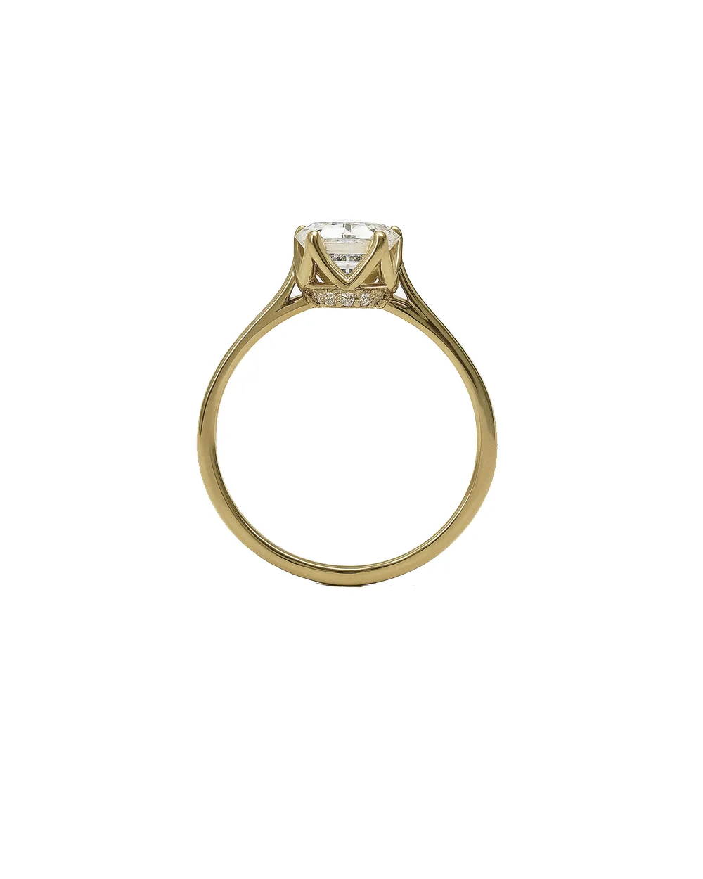 سنگ اتمی سفید شفاف با پایه نگین دار طرح تاج محسور شده است