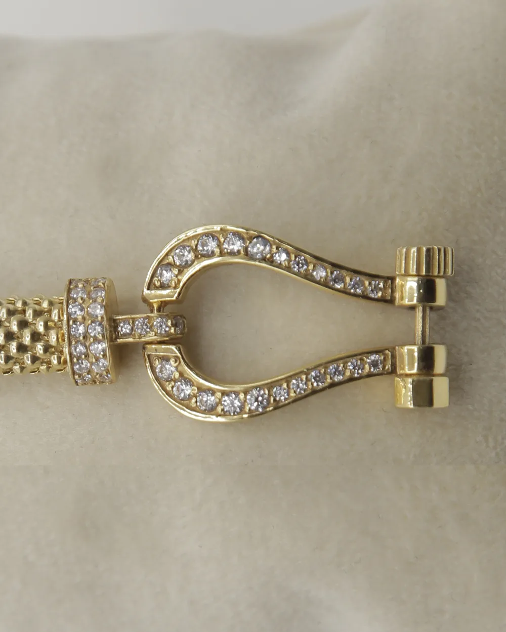 دستبند جسیکا فرد نگینی گلد با ظرافت و زیبایی بی‌نظیر خود، یکی از محبوب‌ترین و پرفروش‌ترین زیورآلات مورد توجه بانوان شیک‌پوش با الهام از دستبند فورس 10 برند فرد می باشد. دستبند فورس ۱۰ که به مناسبت پنجاه و پنجمین سالگرد ساموئل فرد آرژانتینی طراحی شد با تطبیق پذیری قابل تعویض و زیبایی شناسی ترکیبی جنسیتی، شخصیت هر فرد را در بر می گیرد. FRED با هماهنگی جسورانه ملاقات غیرمنتظره یک کابل قایقرانی فولادی بافته شده با یک سگک طلا – دو ماده ای که زمانی متضاد به نظر می رسیدند – تاریخ جواهرات را مشخص کرد. این دستبند با چشم انداز آوانگارد پویا خود مجموعه ای کامل از قطعات در عین حال آرام و مترادف با جواهرات چشمگیر را به وجود آورده است. طراحان سینری گلد نیز این ترکیب زیبا را در کنار بند جسیکا این گونه زیبا و جذاب به نمایش گذاشته اند. در طراحی این دستبند از بند جسیکای خاویاری و پلاک تمام نگین طرح فرد استفاده شده است . قفل این دستبند همانند طرحهای برند فرد در جلوی دستبند روی پلاک قرار دارد. این دستبند زیبا با پوشش سنگ های قیمتی مانند برلیان ، یاقوت شناسنامه دار و ترکیب های رنگی گلد، سفید و رزگلد و همچنین پلاک های آینه ای ساده در سینری گلد گالری قابل سفارش می باشد.