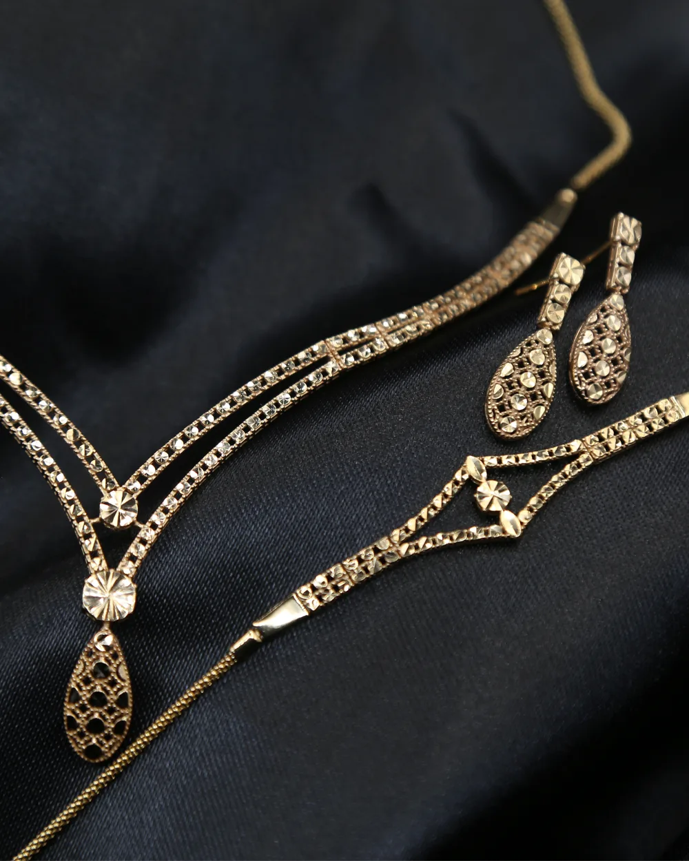 سرویس عروس براین یک ست کامل از گردنبند، دستبند و گوشواره می باشد . این سرویس زیبا و شیک تراش دار و بدون سنگ است .