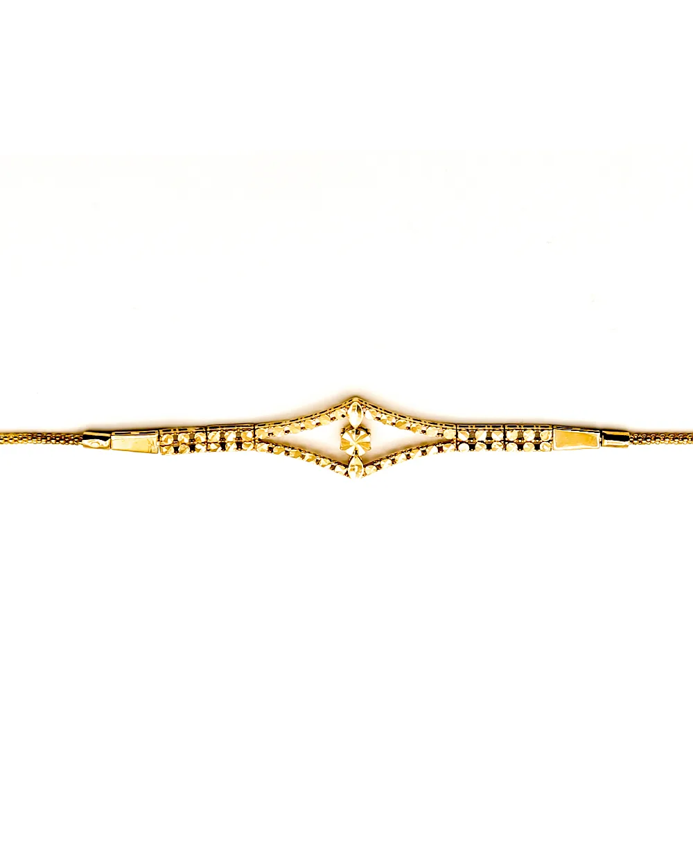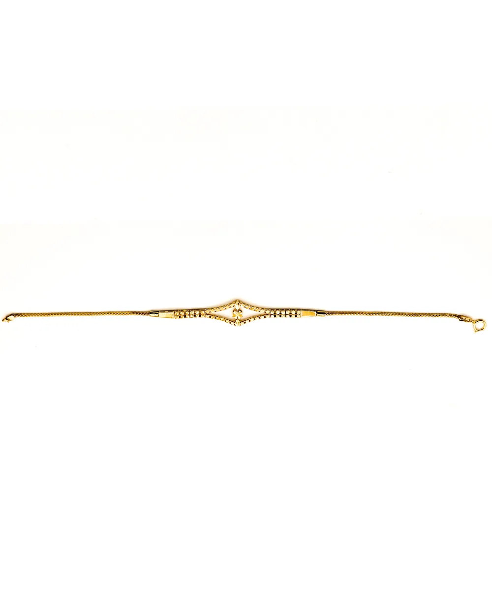 دستبند سرویس با یک لوزی و دانه تراش دار در وسط به زنجیر جسیکا متصل شده است .