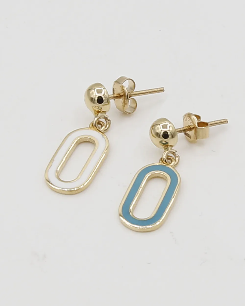گوشواره ها تا به تا هستند یکی مینایی سفید رنگ و دیگری مینایی فیروزه ای می باشد